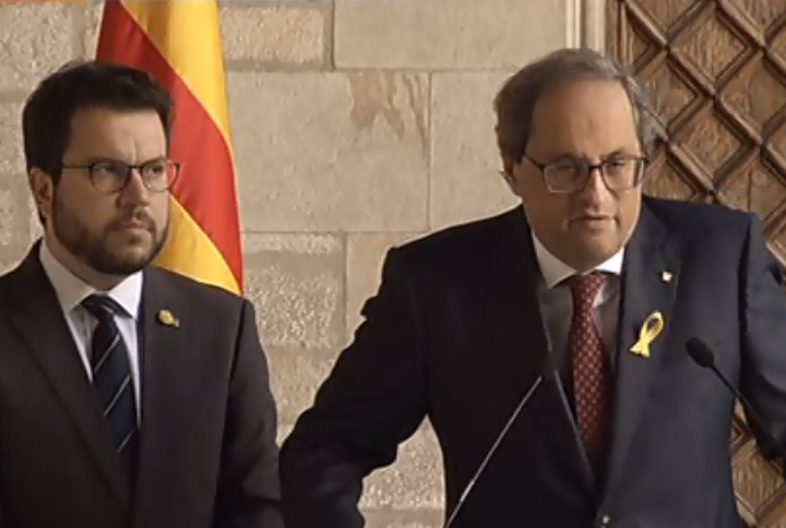 "Tenin un pla de Govern", ha vuelto a afirmar Quim Torra en compañía del Vicepresidente Aragonés, en una rueda de prensa convocada tras la reunión que ambos han mantenido en el Palau de la Generalitat catalana tras la crisis que los dos socios soberanistas han escenificado durante este jueves y que ofrecían el bochornoso espectáculo de un enfrentamiento sin retorno con amenazas veladas de elecciones como única salida.