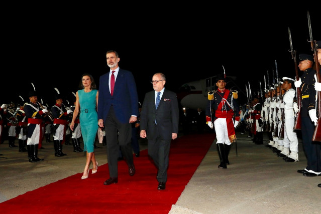 Resuelto el problema, los Reyes de España fueron recibidos con honores al pie del avión, en presencia de los ministros de Exterioes de los dos países, el español Josep Borrell, que ya se encontraba en Buenos Aires, y el argentino Jorge Faurie.