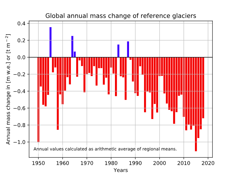 Balance de masa anual de los glaciares de referencia con más de 30 años de mediciones glaciológicas en curso / world glacier monitoring service