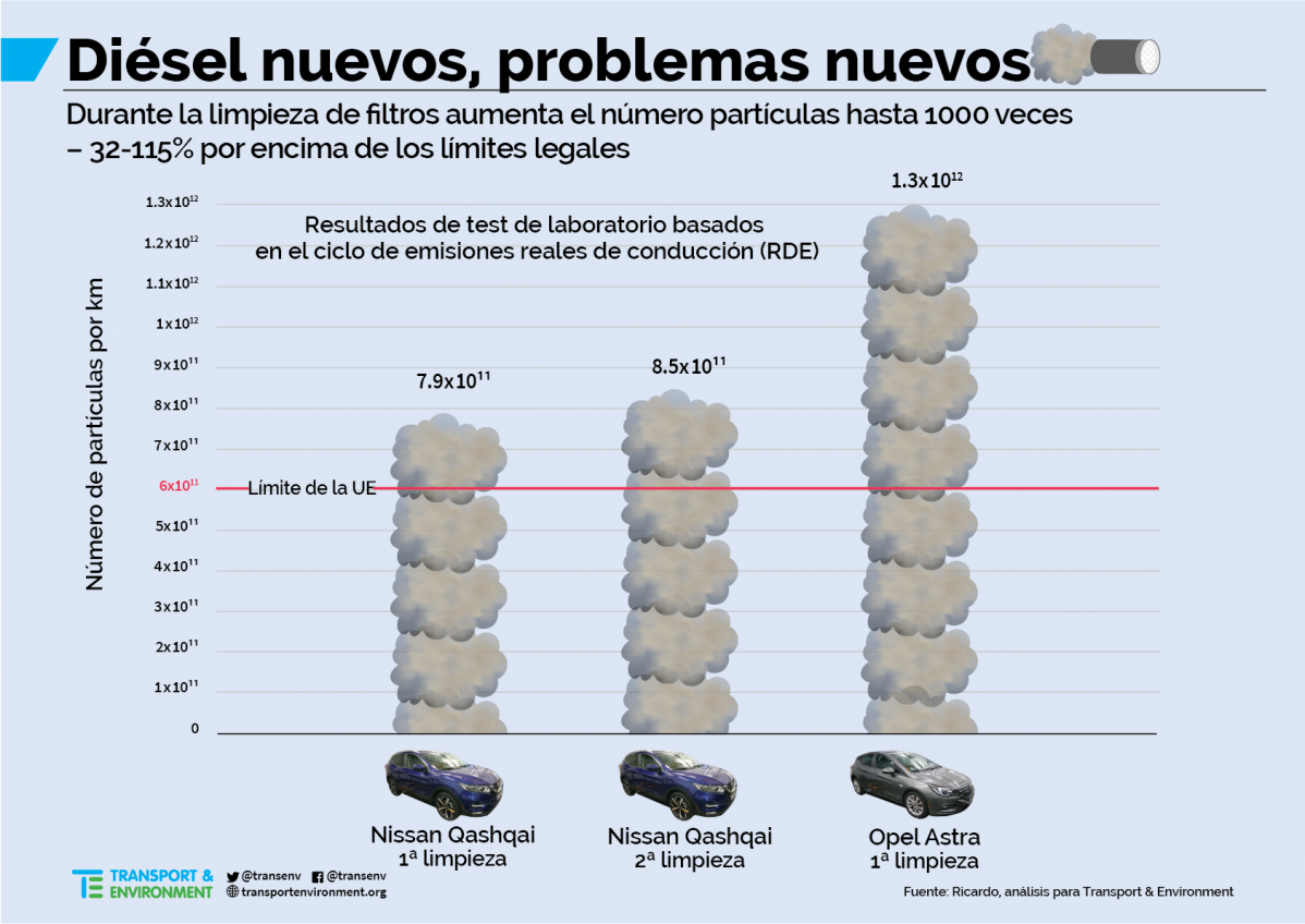 "La limpieza del filtro se puede producir cuando el coche se conduce por ciudad, con lo que coches teóricamente limpios (etiqueta C) emiten una enorme cantidad de partículas muy contaminantes durante unos 15 km en zonas con una ya pobre calidad del aire".