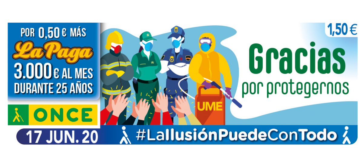 La ONCE arranca, este lunes, la venta con una colección especial de 46,5 millones de cupones, uno por ciudadano, que ocupará toda la primera semana, para reconocer el esfuerzo de la sociedad en estos días y agradecer a quienes, con su trabajo, han sido esenciales en la lucha contra el COVID-19.