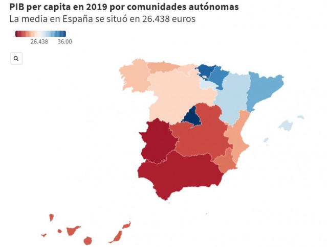 El PIB de cada comunidad autónoma en 2019, en gráficos