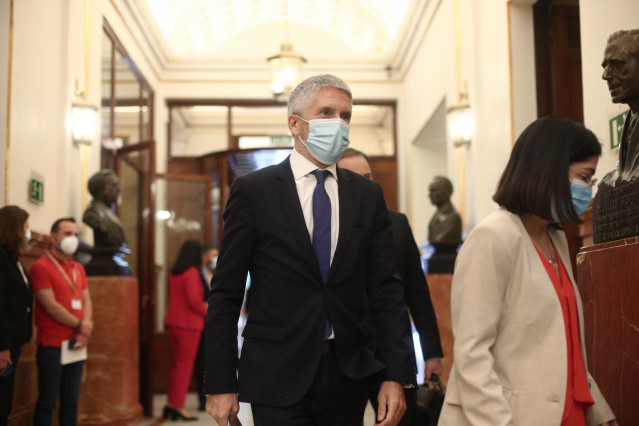 El ministro del Interior, Fernando Grande-Marlaska, ha rehusado este miércoles dar detalles sobre la seguridad del Rey emérito sosteniendo que no puede hacerlo ni en su caso ni en el de ninguna otra autoridad. Además, sobre la marcha de Juan Carlos I ha añadido que su servicio de escolta no depende de "ninguna partida específica ni gasto adicional dentro de los presupuestos vigentes".