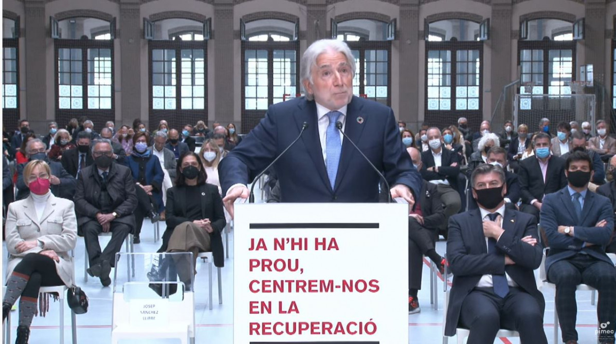 En el desarollo del acto, el presidente de la patronal de Pimec, Antonio Cañete, ha evidenciado su hartazgo por el cierre de actividades económicas con medidas "arbitrarias y sin sensibilidad económica".