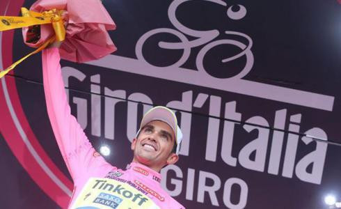 Contador sigue en el Giro pese a sus heridas en el hombro y rodilla