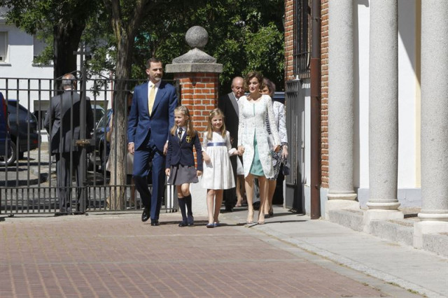La Comunión de Leonor ha permitido ver a la Familia Real junta por vez primera desde la proclamación de Felipe VI el pasado 19 de junio. Desde la Casa del Rey no han precisado si a la celebración en Zarzuela acudirán otros miembros de la familia del Rey, como la Infanta Elena y sus hijos, primos de la homenajeada y quienes residen en Madrid.