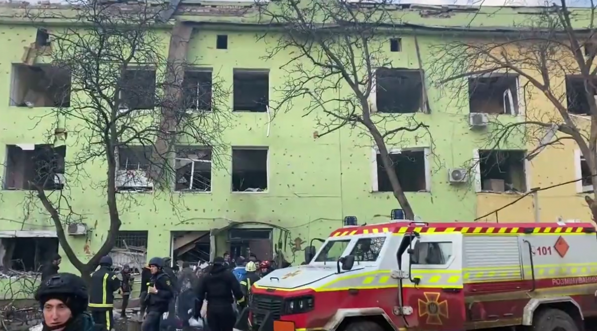 Hospital bombardeado en Mariúpol @captura de pantalla de un vídeo compartido en Twitter