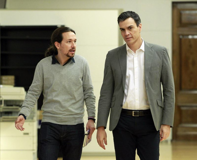 Iglesias lanzó el pasado 22 de enero, tras su primera reunión con el Rey Felipe VI, una oferta a Sánchez para conformar un ejecutivo de coalición integrado por PSOE, Podemos e Izquierda Unida, presido por el candidato socialista a la Moncloa, con el líder del partido emergente de vicepresidente, y con un reparto "proporcional" de ministerios entre estas tres formaciones.