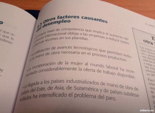 La culpa del paro la tienen los inmigrantes y las mujeres, según un libro de Bachillerato