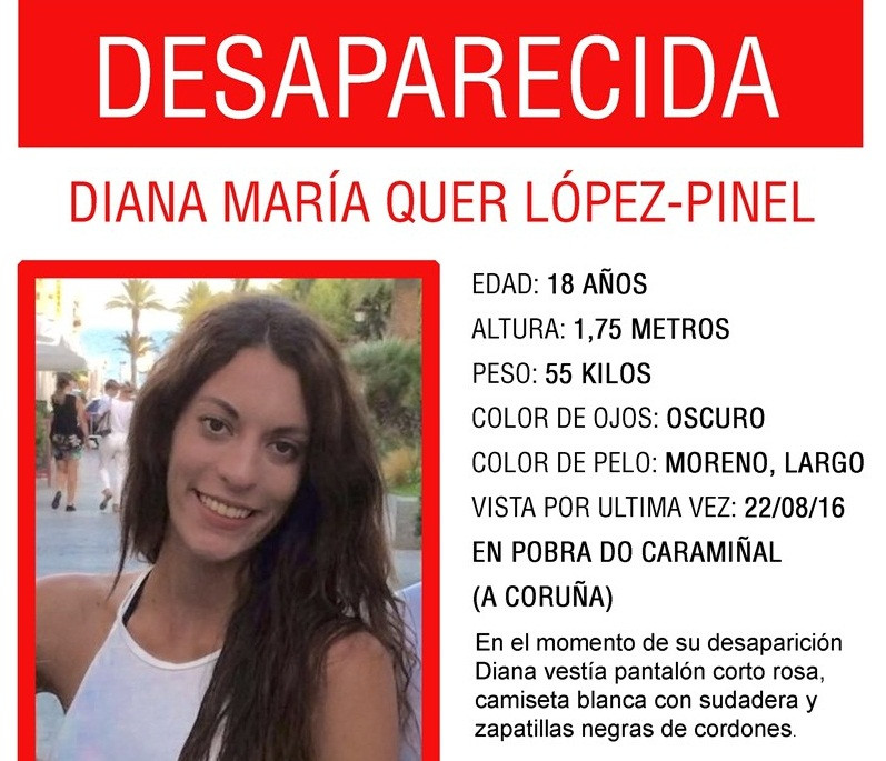 Diana María Quer López-Pinel fue vista por última vez en la madrugada del lunes 22 a un kilómetro de la vivienda donde veranea con su familia en la zona de Cabío-Xobre, en un área del paseo marítimo de A Pobra, donde tenían lugar las fiestas locales.