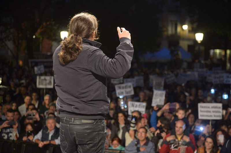 "No nacimos para transformar las reivindicaciones de la gente en parlamentarios que no muerden", ha avisado el líder de la formación morada durante el mitin que ha ofrecido en la Plaza del 2 de Mayo de Madrid, con motivo del Día Internacional para la Erradicación de la Pobreza, bajo el lema 'Nadie sin luz'. "Ningún partido sustituye a la gente de la calle", ha avisado.