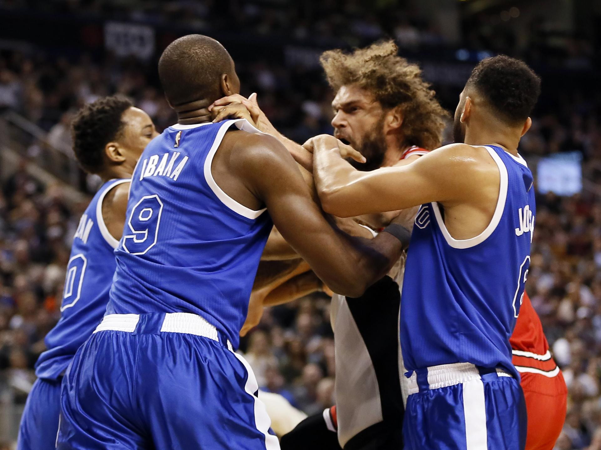 El ala-pívot hispano congoleño, Serge Ibaka, y Robin López fueron expulsados del partido entre los Bulls de Chicago y los Raptors de Toronto, tras enfrascarse en una pelea que acabó a puñetazo limpio cuando faltaba 3:58 minutos para el final del tercer cuarto.