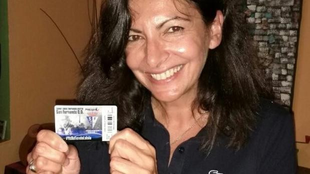 Anne Hidalgo con su carnet del Club Deportivo San Fernando.