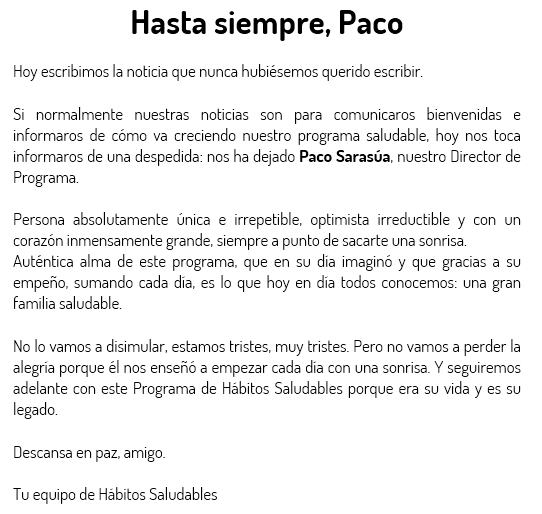 Durante su última etapa laboral, fue patrono y director de desarrollo de la Fundación Thao para paliar la obesidad infantil. Y no cejó hasta conseguir, en 2011, la adhesión de su ciudad al programa Thao-Salud Infantil, un plan piloto para la prevención del sobrepeso y la obesidad en niños desde su más temprana edad que llegó a funcionar en casi un centenar de municipios españoles.